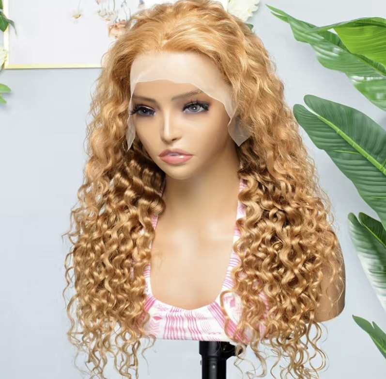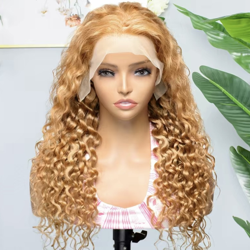 Perruque de cheveux humains Lace Front de haute qualité 13*4 – Densité 180 %, perruque frontale Full Lace transparente #27 couleur marron miel IC italienne bouclée longueur 24 parfaite pour créer des styles d'apparence naturelle